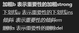 <u>下划线u</u> <ins>表示重要性的下划线ins</ins> <br>