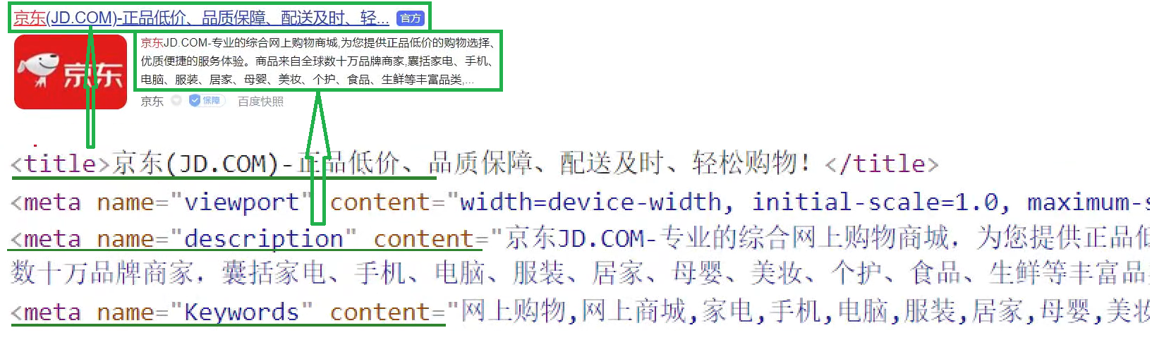 <title>文章标题</title> <meta name="description" content="描述"> <meta name="keywords" content="关键词1,关键词2">
