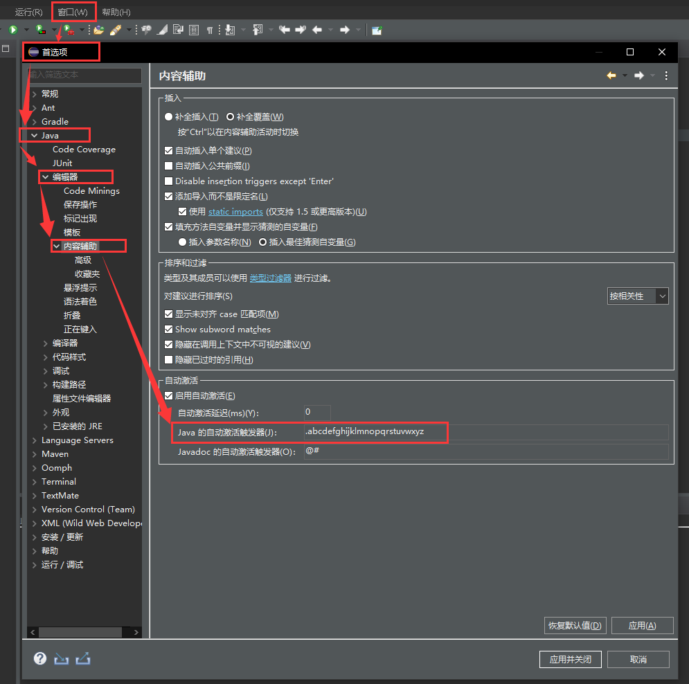 eclipse代码提示全键盘自动激活设置