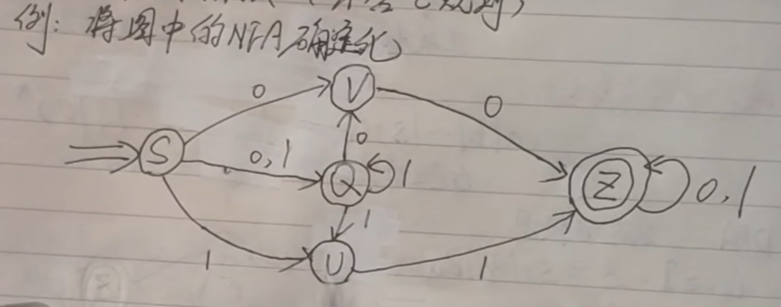 新的开始状态F' = { [V,Z] , [Q,U,Z] , [Z] }- 新的终止状态状态,是所有状态中,包含旧的终止状态的集合