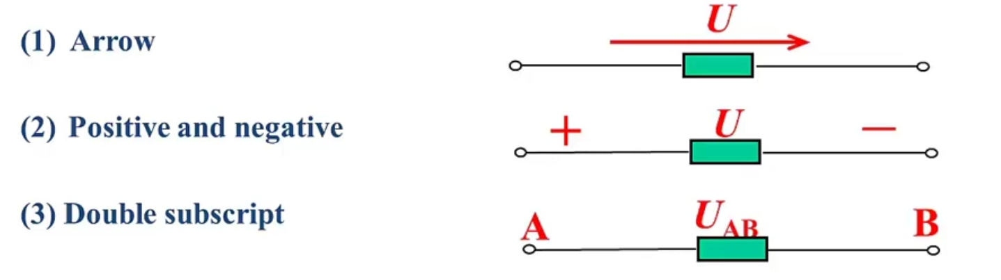 电压参考方向的三种表示方式
