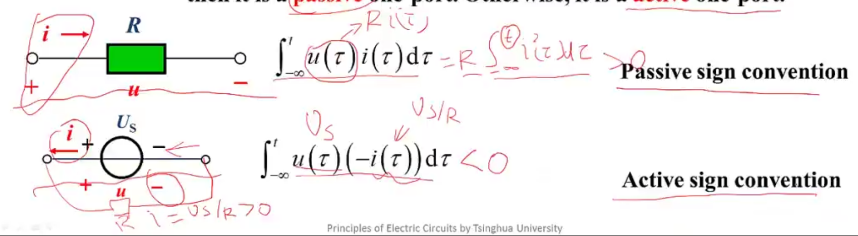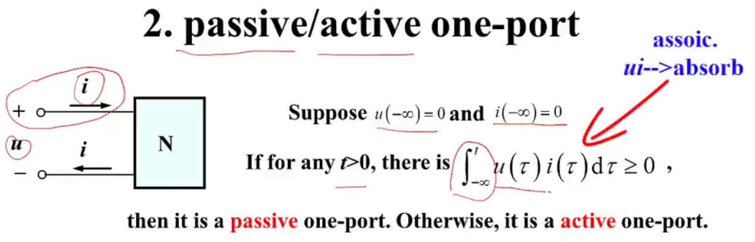 - 吸收功率的是无源一端口,发出功率的是有源一端口