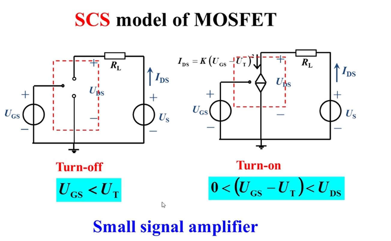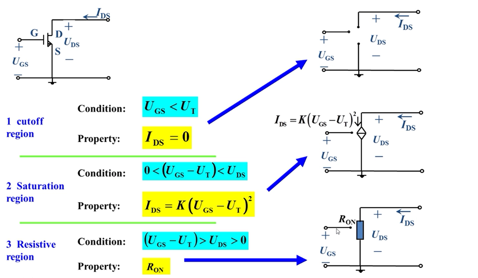 0 < Uds < Ugs-Ut- Ut < Ugs