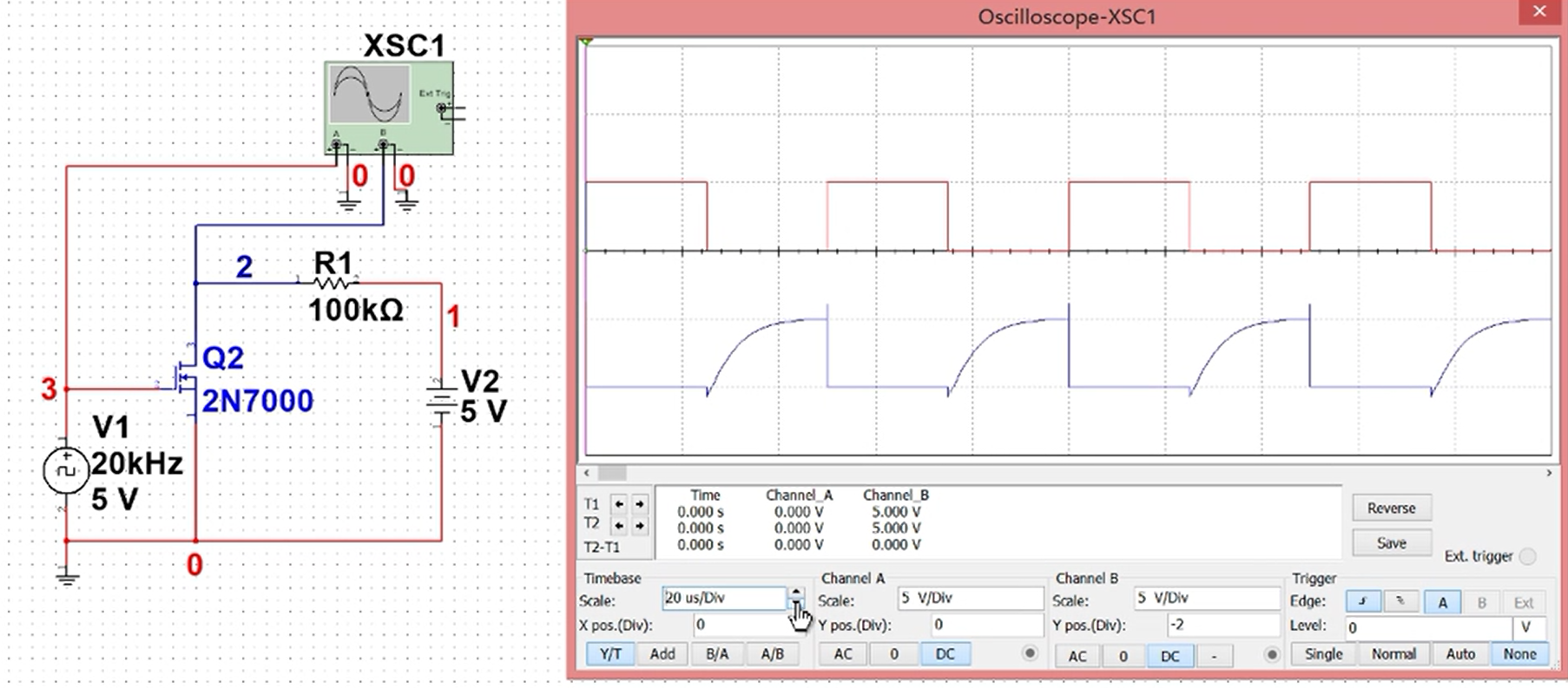 但到输入电压频率很高时,输出信号将产生畸变(原因和GS间等效电容有关,后续会讨论)