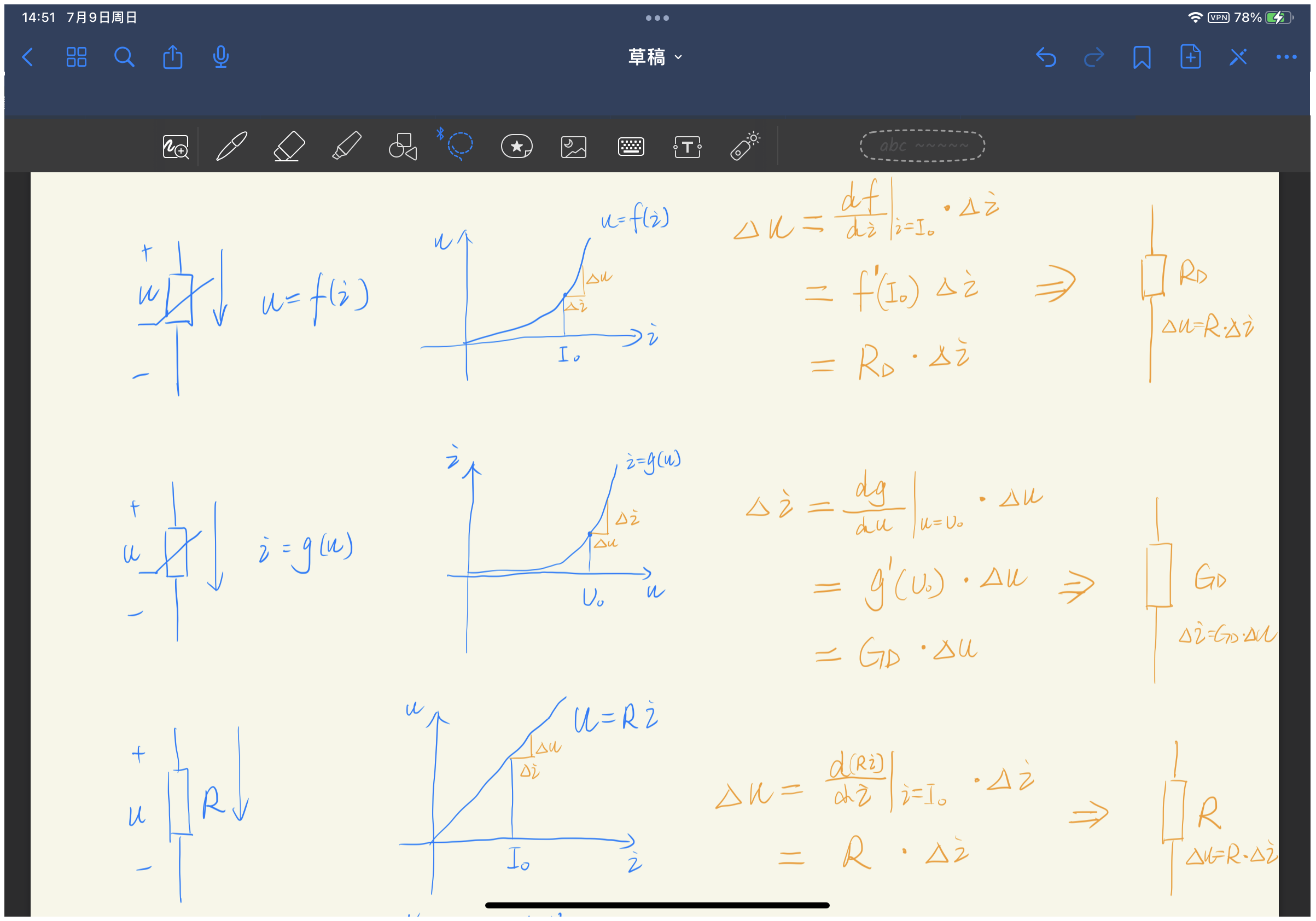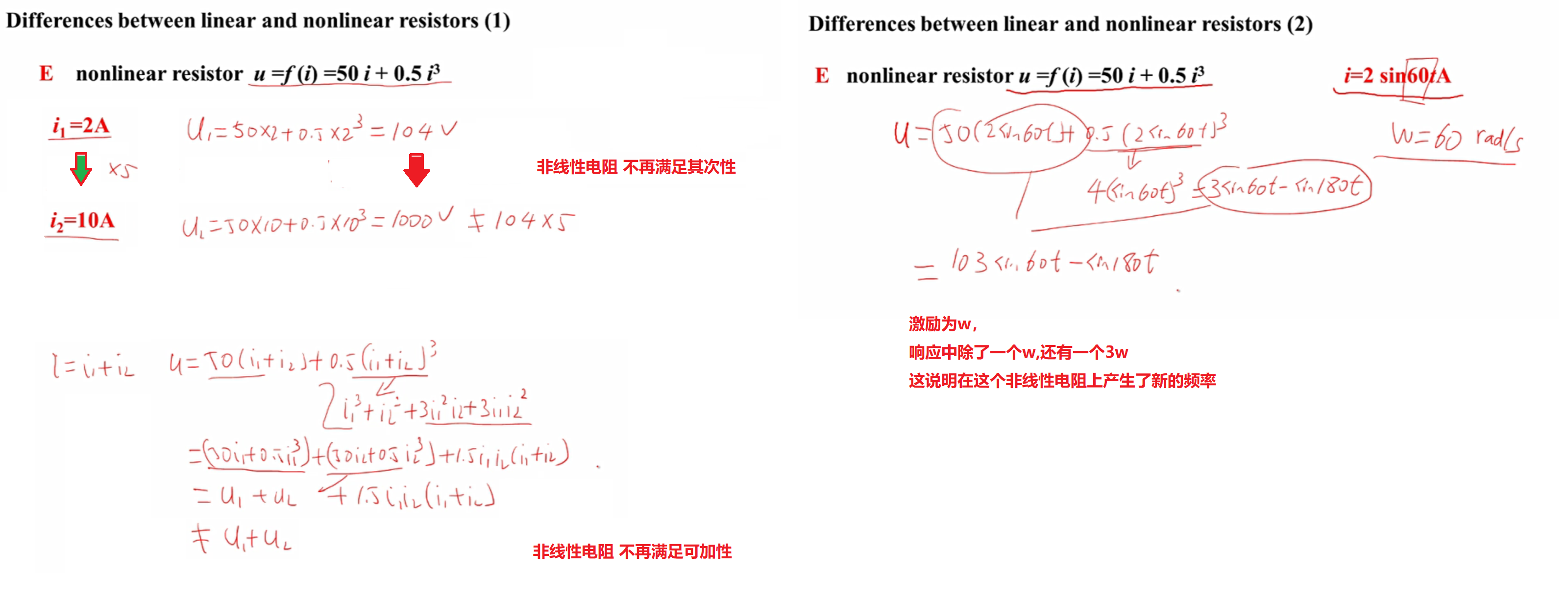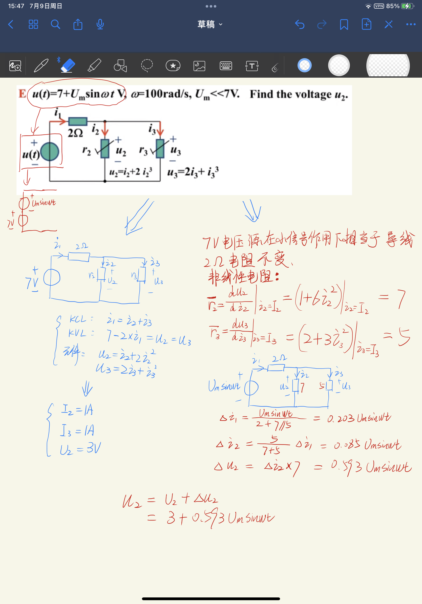 小信号作用在非线性电阻、线性电阻上的等效