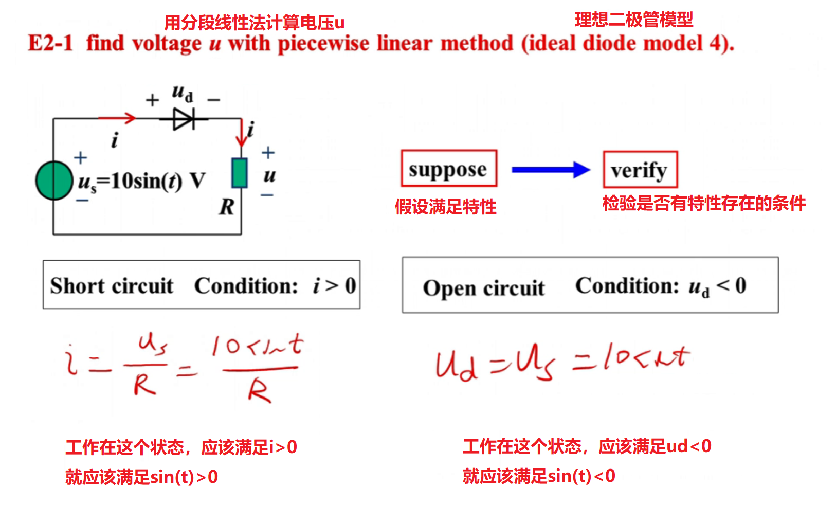 计算含理想二极管的负载上的电压