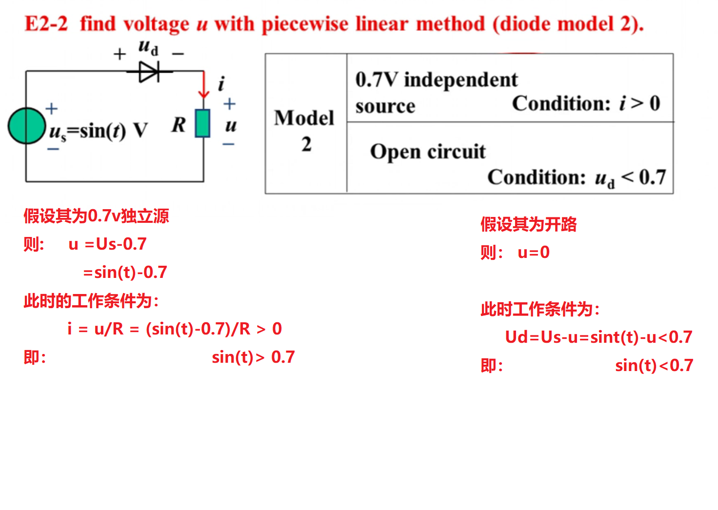 计算含压降的二极管模型上的电压