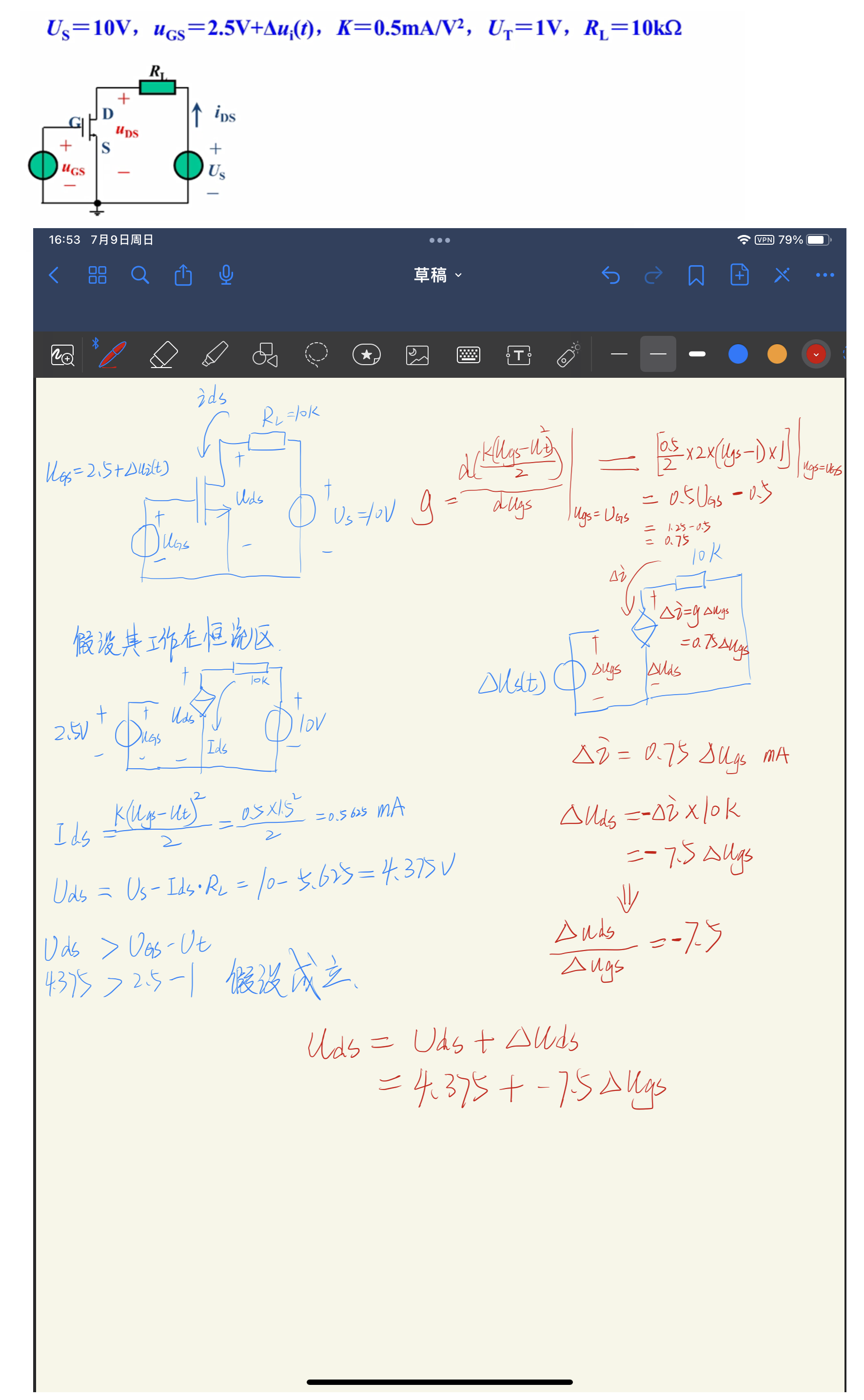 小信号模型求解电路的例题