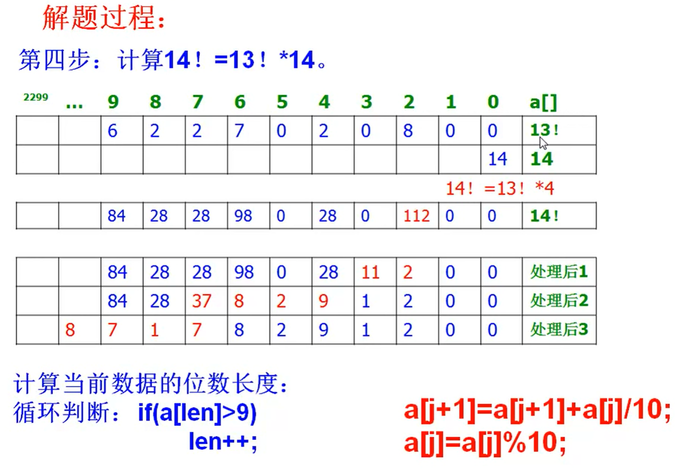 num[j + 1] += num[j] / 10;// 处理进位,低位向高位进