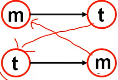 - 换句话说,有一节点入度为0出度为1,有另一节点出度为0,入度为1